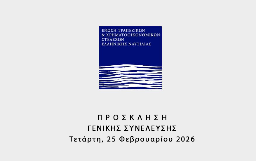 Π Ρ Ο Σ Κ Λ Η Σ Η ΓΕΝΙΚΗΣ ΣΥΝΕΛΕΥΣΗΣ Τετάρτη, 25 Φεβρουαρίου 2026 Καλούνται τα μέλη της Ένωσης Τραπεζικών και Χρηματοοικονομικών Στελεχών Ελληνικής Ναυτιλίας σε Τακτική Γενική Συνέλευση, σύμφωνα με το νόμο και το άρθρο 18 του Καταστατικού της...